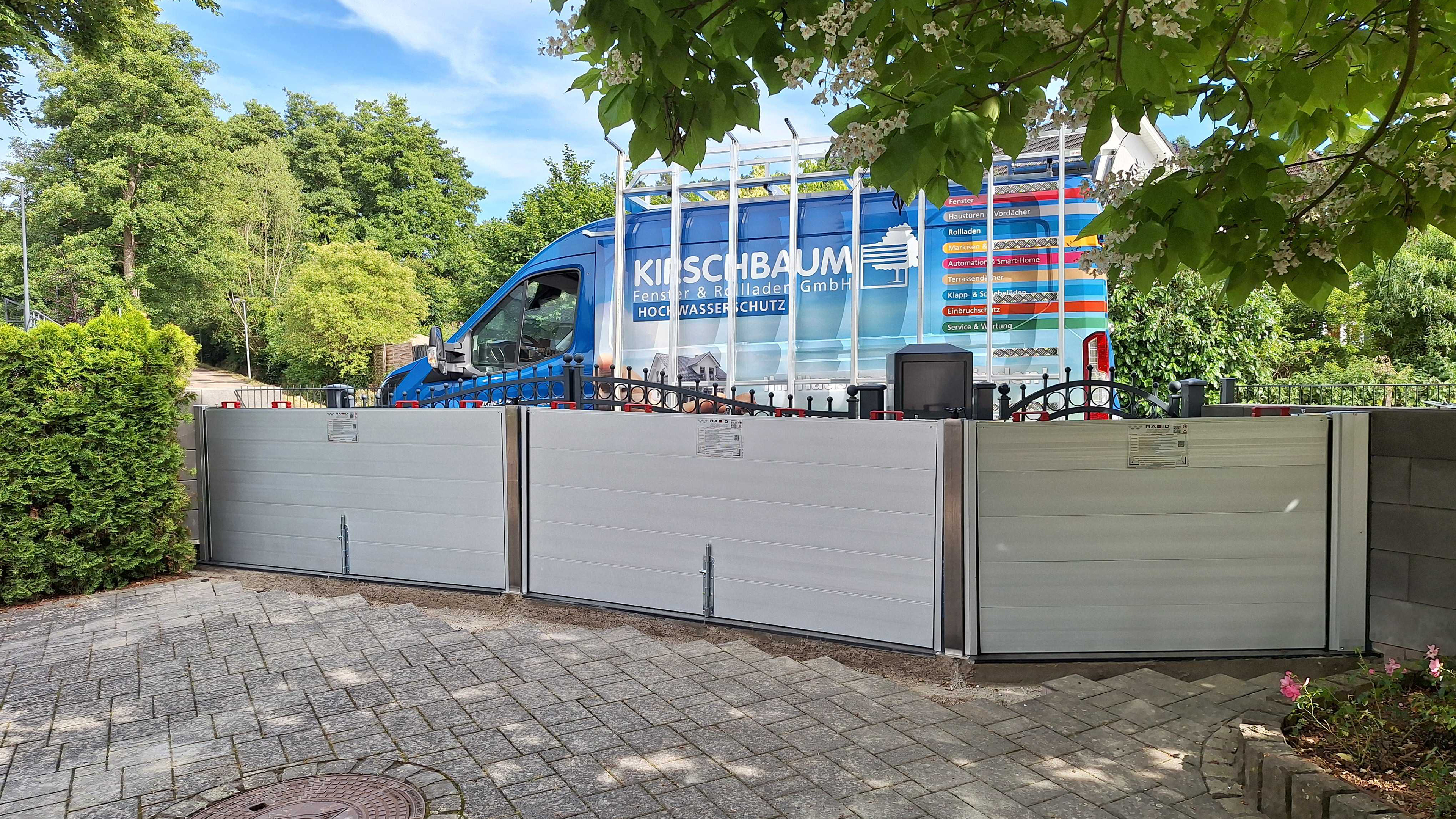 Zudem hat das Unternehmen Kirschbaum Tradition: Uns gibt es schon seit 1951. Mit unserer Abteilung für Hochwasserschutz stellen wir in diesem Bereich das größte Unternehmen in NRW dar. Unser Sitz ist zwar in Köln, aber wir sorgen auch in der Region Ahrtal, Rheinbach und Euskirchen sowie rund um Bergisch Gladbach für Hochwasser- und Starkregenschutz. Wir nehmen das Thema Hochwasser- und Starkregenschutz ernst: Mein Vater und ich haben diesen Bereich aufgebaut, hier arbeitet der Chef noch selbst mit. Unser Ziel ist es, mit unserer Expertise und unseren qualifizierten Mitarbeitern der größte und zuverlässigste Hochwasserschutz-Lösungsanbieter in NRW zu bleiben und hoffentlich viele weitere Bürger vor dem schlimmen Schicksal der Betroffenen zu bewahren.