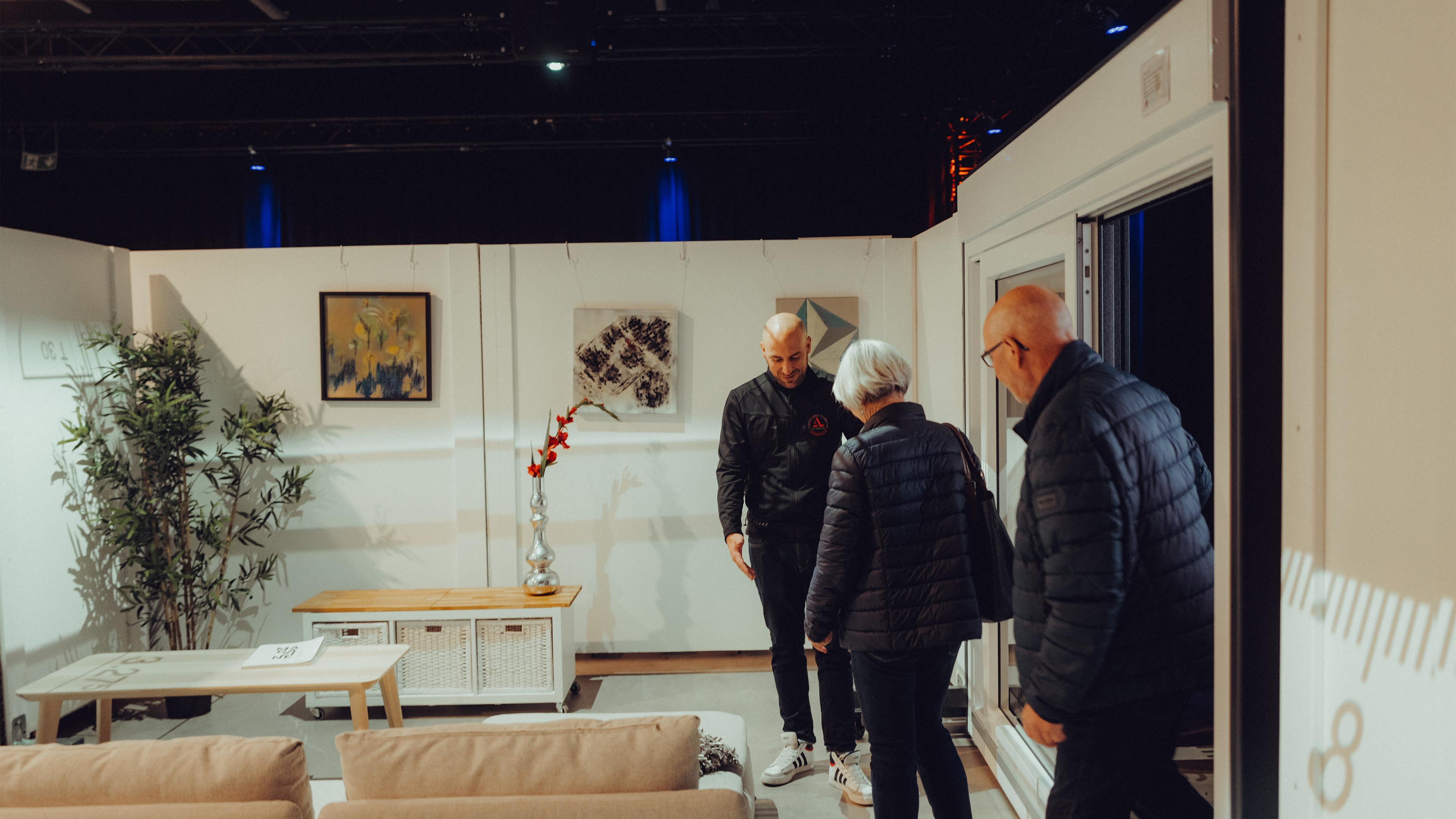 Florian Lorson: Mit dem uns überlassenen Grundriss bauen wir die Räume maßstabsgetreu nach beziehungsweise projizieren diesen 1:1 auf den Hallenboden. Bestückt mit Mobiliar, das Sie nach Geschmack und Vorliebe individuell verschieben und neu platzieren können, erleben Sie dann bei einem virtuellen 3D-Rundgang mit VR-Brille Ihre Räume in Echtzeit und Originalgröße, spüren das Raumgefühl, wie es sich später nach Fertigstellung des Bauvorhabens präsentieren wird. Derartig aufbereitet sind auch eine zweite Ebene und Aufsicht wie auch die Garage und angrenzende Außenräume möglich. So gewinnen Sie den optimalen Eindruck von dem künftigen Wohnraum, maximale Klarheit und Sicherheit und nehmen den Wow-Effekt des Erlebten mit nach Hause.