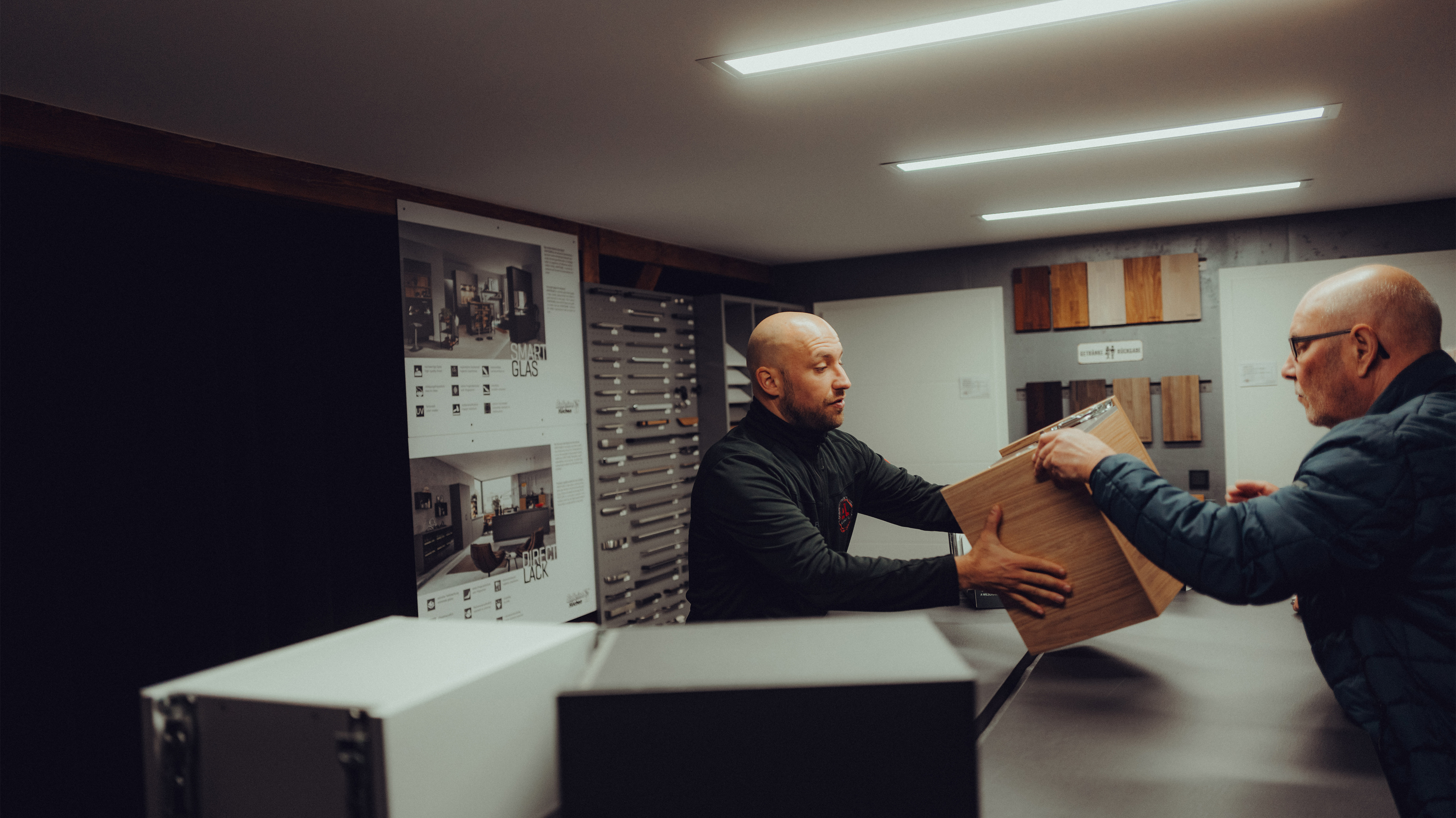 Florian Lorson: Im Prinzip ganz einfach. Bei Interesse setzen Sie sich mit uns in Verbindung. Wir vereinbaren einen Termin in unseren Räumen, zu dem Sie etwas Zeit mitbringen sollten, und lassen uns dazu rechtzeitig einen aussagekräftigen Grundriss Ihrer Planung zukommen. Das ist die Grundlage für alles Weitere. – Damit keine Missverständnisse entstehen: Wir übernehmen keine Planung, aber wir machen die bisherige Planung erlebbar und unterstützen und begleiten bei der einen oder anderen Frage, wenn es um Korrekturen oder Anpassungen geht. So können Sie Ihre Räume detailliert planen, genau so, wie es Ihnen vorschwebt.
