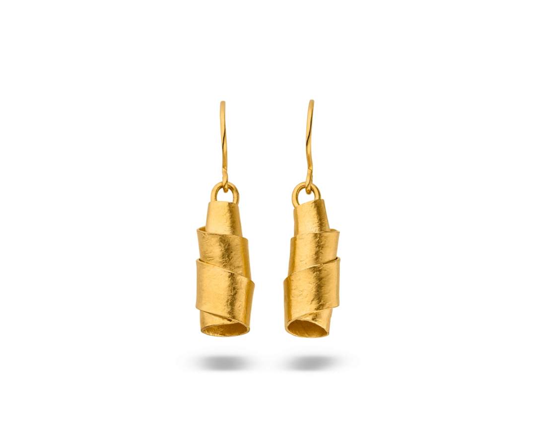 Diese handgefertigten Ohrringe aus dem Flensburger Goldschmiede - Atelier Trapez von Birgit Johannsen haben die Form eines gewickelten Bands.