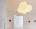 Viel mehr als nur eine große Hängelampe: Cloudy ist das Ergebnis einer genauen Studie über die Kombination von Volumen und gleichmäßiger Lichtverteilung, um ein ausgewogenes Ensemble zu erhalten und dabei mit einer asymmetrischen Anordnung seiner Teile zu spielen.