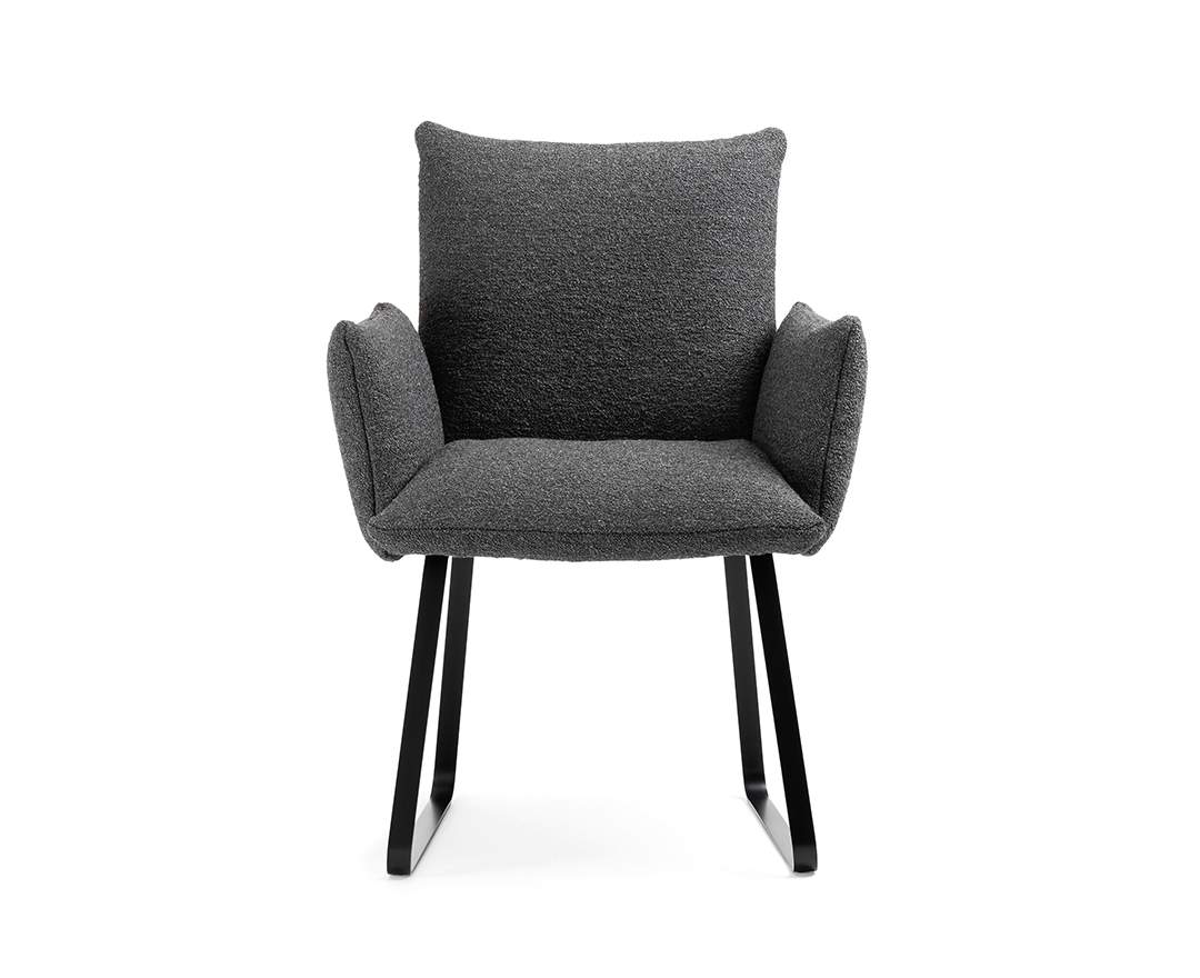 Drei Kufenvarianten, in Chrom, Schwarz und Bronze, verändern den Look des modernen Dining Stuhls und sorgen für wandelbare Eleganz bei gleichbleibendem Komfort.