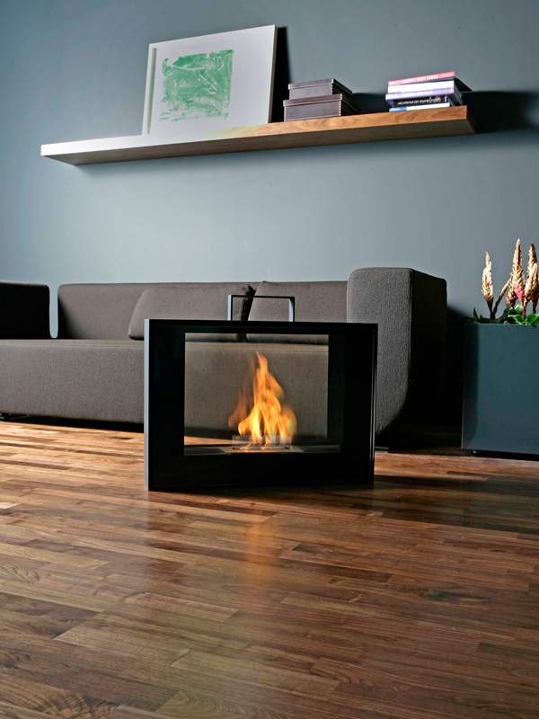 Der schmale Kamin TRAVELMATE in Form eines tragbaren Koffers lässt sich an jedem gewünschten Ort drinnen wie draußen aufstellen. Der Tragegriff erleichtert den Transport. Zum Befüllen des Tanks und Anzünden wird die schützende Glasscheibe mit Magnetverschluss abgenommen. Der rauchfreie Kaminofen spendet mit einer Tankfüllung bis zu 3 Stunden schönstes Flammenspiel. Das Design stammt von Studio Vertijet und wurde 2008 mit dem Red Dot Award und dem Good Design Award ausgezeichnet.
