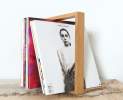 b-seite ist komplett aus Eiche. Der Rahmen des Plattenständers ist auf Gehrung gearbeitet. Er lagert auf einer massiven Holzplatte, die der luftigen Konstruktion die nötige Schwere für einen festen Stand gibt.
