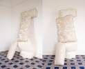Eine von tibetischen Teppichen inspirierte Kettenstichstickerei verschönert einen strukturierten und matten Wollsatin mit seiner starken Persönlichkeit und stimmungsvollen Wirkung. Das Weiß-auf-Weiß-Design erinnert an magische Tiger und geheimnisvolle Kreaturen, die den Schnee durchfurchen.