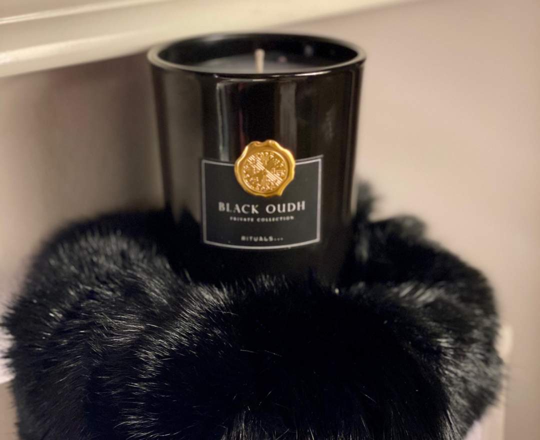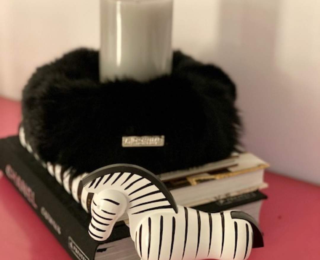 Kaninchenfellkranz in der Farbe schwarz mit einem Durchmesser von ca. 15 cm