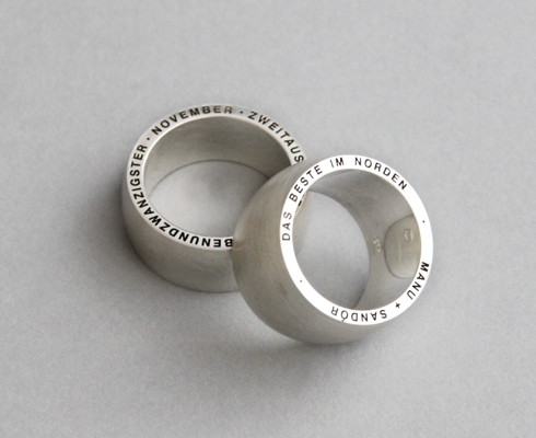 Das Paar aus 925er Silberringe inkl. der beidseitigen Gravur kostete 650,00 € und der 585er Weißgoldring mit beidseitiger Gravur 1200,00 €.
