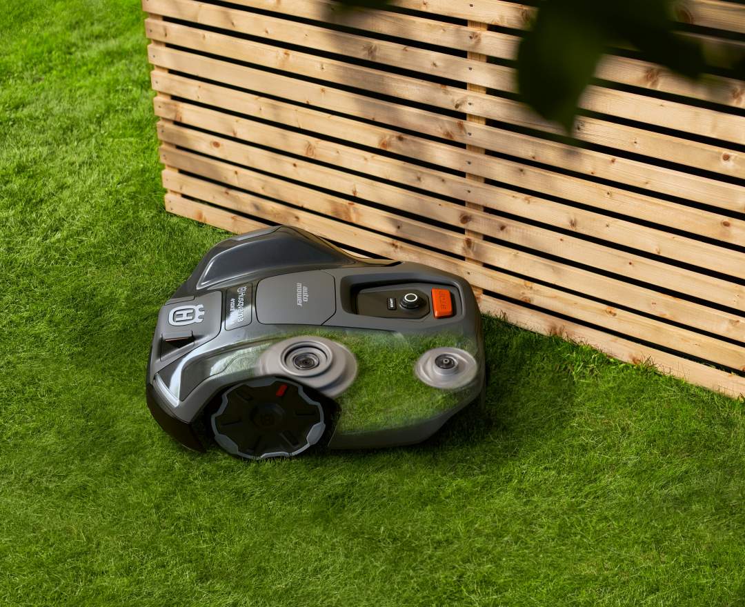 Mit Sensoren erkennt der Mäher Hindernisse und kann ihnen ausweichen. Dadurch mäht er ganz präzise bei geringerem Risiko von Zusammenstößen und ungeplanten Stopps.