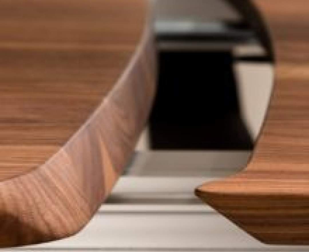 Konkave und konvexe Kantenverläufe lassen die Tischplatten filigran erscheinen und sind ein absoluter Blickfang.
