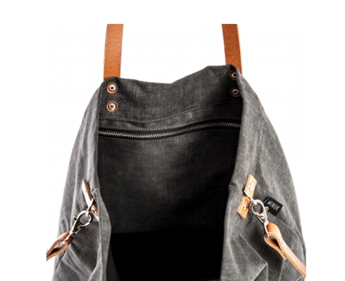 • Material: 100% Canvas (Baumwolle), Leder, Nieten (vernickelt), Metallreißverschluss