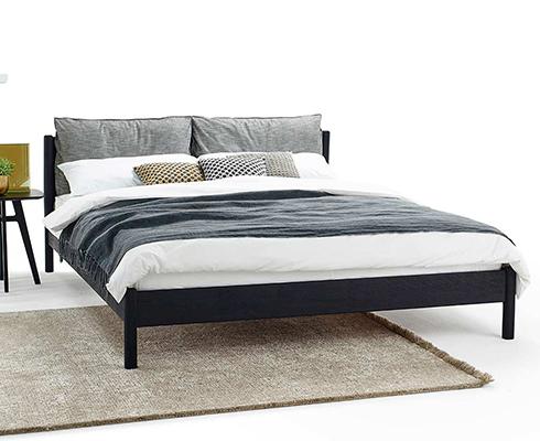 LIV von Möller Design ist ein klassisches Stollenbett mit schönen handwerklichen Details wie den stark gerundeten Beinen und den nach oben fein auslaufenden Bettseiten. Das Bett verkörpert Leichtigkeit und Schönheit in reinster Form. Ein überaus spannendes Detail sind die am Kopfteil leicht nach vorne geneigten Beine, die zusammen mit der Mittelstrebe ein ästhetisches Gerüst bilden. Darüber wird eine edle Kernlederschürze aufgespannt, in die flauschige Kissen eingelegt werden.