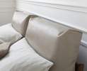 Beim Bett SOVA wurde bewusst auf eine bevorzugte Ansichtsseite verzichtet, um sicherzustellen, dass es von allen Seiten ästhetisch ansprechend ist. Optimal kommt es daher freistehend im Raum zur Geltung. Die opulenten Kissen am Kopfende, bezogen mit Leder oder Stoff, verleihen dem Bett eine elegante Note, und man kann sich gemütlich angelehnt stundenlang dem Lesen hingeben, umgeben von einer ruhigen Atmosphäre.