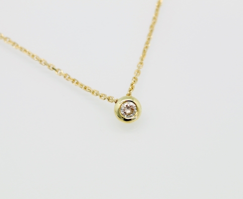 585/- Gelbgold Collier mit einem champagnerfarbenen Brillanten.