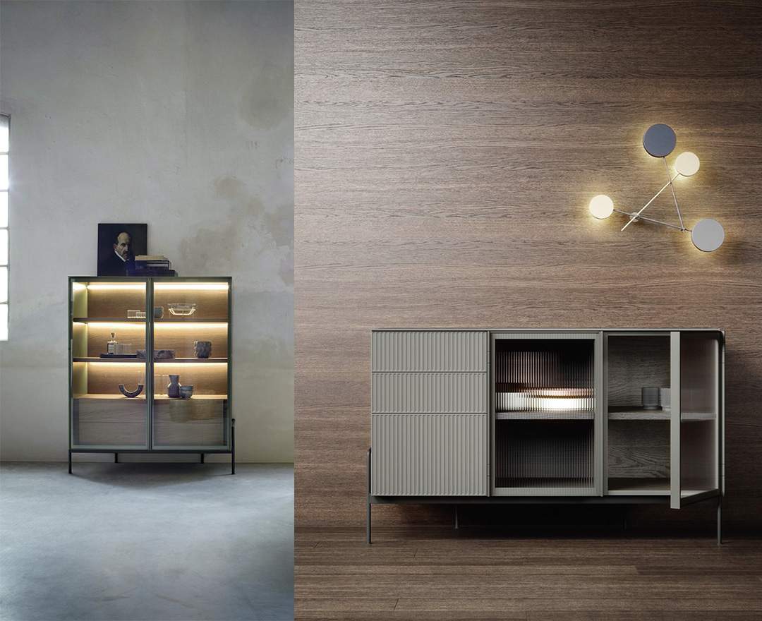 Das Sideboard Belt, entworfen von Philippe Nigro, bietet eine vielfältige Konfigurationsmöglichkeit. Das Untergestell aus Metall kann flexibel mit verschiedenen Tür- und Schubkästenmodulen kombiniert werden. Die Besonderheit des Systems liegt in der Modularität, die individuelle und vielfältige Staumraumlösungen zulässt. Durch die Verwendung der Glastüren Era kann das Sideboard Belt in eine elegante Anrichte verwandelt werden, wobei der Inhalt sichtbar bleibt. Die LED-Beleuchtung verleiht dem Belt einen schicken und modernen Touch.
