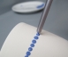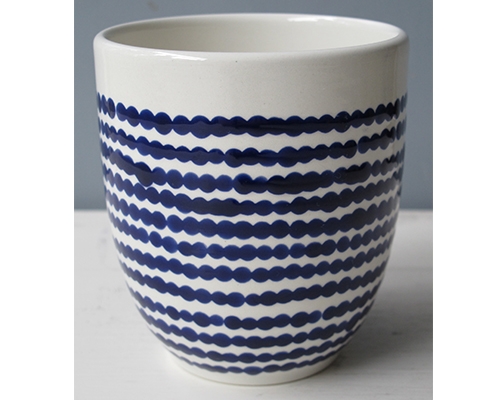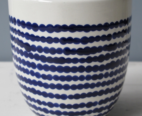 Für die Gestaltung dieses Bechers wurde einfach die Rückseite des Pinsels in die Farbe getaucht, um Punkt für Punkt das Muster zu erreichen.