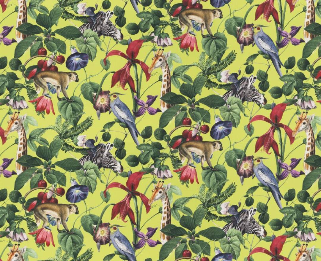 Dessin: floral, Dschungel, Tierwelt, drei verschiedene Farbgebungen (grün, weiß, grau)