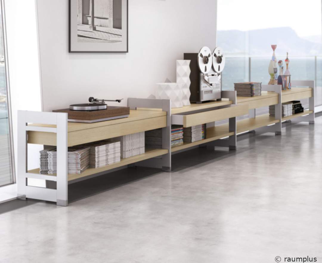 Durch die Kombination von frei wählbaren Aluminiumrahmen mit verschiedenen Kommodenmodulen, speziellen Leichtbau-Böden, Drehrahmen und Rollböden geht das System auf Ihre Bedürfnisse ein und wirkt dabei, trotz enormem Fassungsvermögen, nicht wuchtig oder massiv. Die frei positionierbaren Kommoden sorgen im begehbaren Kleiderschrank für Ordnung, bringen Kleinteile wohlsortiert unter. Die Kommoden gibt es in zwei Höhen (58 und 83 Zentimeter) sowie in drei Breiten (49, 72 und 95 Zentimeter).
