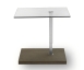 Der Sockel ist in allen Farben lackiert, matt oder hochglänzend lieferbar. Alternativ bietet der Tisch auch einen Sockel in Betonoptik oder aus Massivholz. Die Metallteile sind hochglanz verchromt oder perlglanz verchromt.