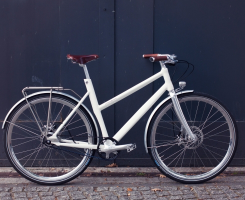 Sahneweiß (der Rahmen ist lackiert, die Gabel hochglanz poliert und klarlackiert)