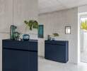 Die schlichte Form des Schuhschranks kann im Raum entweder als farbliches Highlight oder mit elegantem Understatement wirken. Es stehen eine breite Palette an matten und Hochglanz-Lackfarben sowie Holzvarianten in Eiche oder Nussbaum zur Auswahl. Die Modelle können entweder auf einem Sockel stehen oder an der Wand montiert werden. COVER ist perfekt kompatibel mit jedem Einrichtungsstil und repräsentiert einen funktionalen Klassiker.