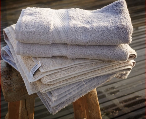 Die Handtücher Daphne gibt es in verschiedenen Größen und in den Farben creme, beige und warm grey.
