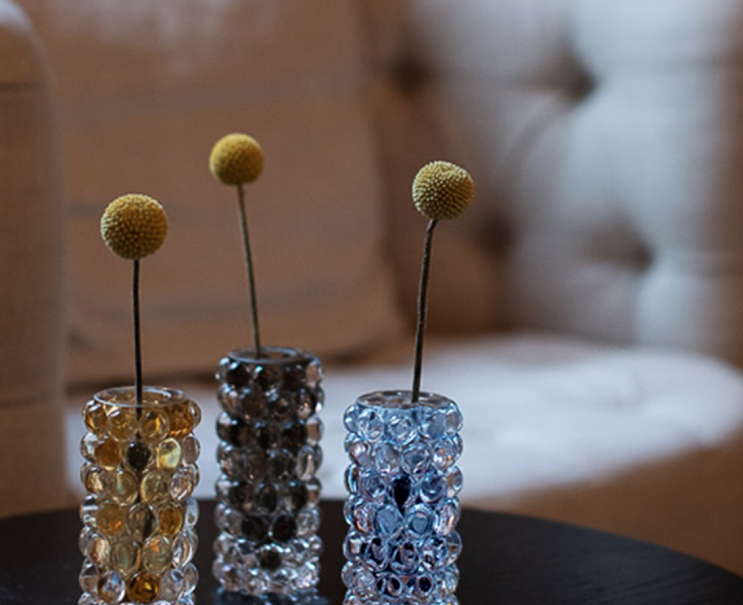 Die Hurricane Boule ist in zwei verschiedenen Farben erhältlich: Smoky blue und Smoky grey. Die Vase gibt Ihrem Zuhause das gewisse Extra. Bei der Herstellung von Hurricane Boule wird die Glasmasse zunächst in eine gusseiserne Form geblasen, dann werden die Blasen per Hand geformt. So bekommt jedes Produkt einen individuellen Charakter.