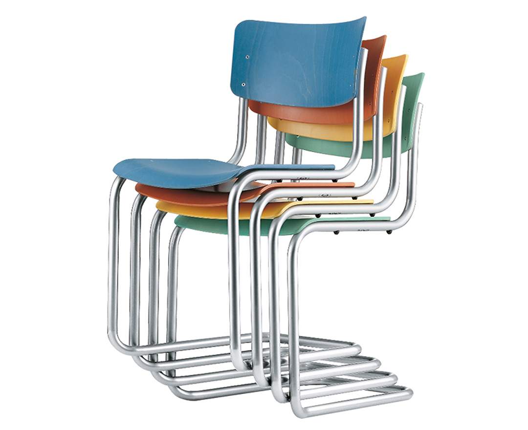 Die Einfachheit, die überall beeindruckt: Mart Stam verlieh dem traditionellen Stuhl, der über Jahrhunderte nach ähnlichen Prinzipien gestaltet wurde, eine neue Wendung, indem er die hinteren Beine entfernte. Durch eine evolutionäre Verfeinerung entstand ein Sitzmöbel, das sowohl Understatement als auch Qualität verkörpert und überall eine gute Figur macht. Mart Stams Möbelentwürfe zeichneten sich durch ihren hohen Nutzen und ihre sparsame Gestaltung aus, sowohl in ästhetischer als auch in materieller Hinsicht. Das Ergebnis ist eine geradlinige Form, eine klare Konstruktion und ein verbessertes Sitzgefühl. Der Freischwinger S 43 erreicht maximale Reduktion, indem er ein Stahlrohr-Gestell mit Formholzteilen für Sitz und Rücken kombiniert. Durch seine schlichte und zurückhaltende Form wird dieser Freischwinger zu einem repräsentativen Entwurf im Geiste der Moderne. Das künstlerische Urheberrecht für den streng kubischen, hinterbeinlosen Stuhl liegt heute bei Thonet. Bereits 1933 wurde der Lesesaal Naturwissenschaften der Deutschen Nationalbibliothek in Leipzig mit dem Freischwinger S 43 ausgestattet. Mehr als 70 Jahre später lieferte Thonet neue S 43 Stühle als Ergänzung. Diese Stahlrohrmöbel von hoher Qualität, wie sie typisch für Thonet sind, sind äußerst langlebig und nachhaltig. Das Sortiment wird durch die Drehstuhlvarianten S 43 Atelier (DR), die Barhocker S 43 H sowie die Kinderstühle S 43 K erweitert.