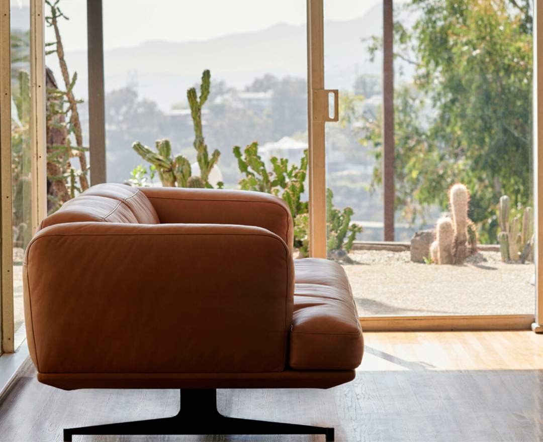 Torbjørn Anderssen und Espen Voll hatten die Absicht, ein Sofa zu entwerfen, das innerhalb eines klar definierten architektonischen Rahmens höchsten Komfort bietet. Mit dieser Vision im Sinn entwarfen sie das Inland, ein niedriges, tiefes Sofa mit hohen Armlehnen und einem warmen schwarzen Stahlfußgestell, das ihm das Gefühl verleiht, zu schweben.