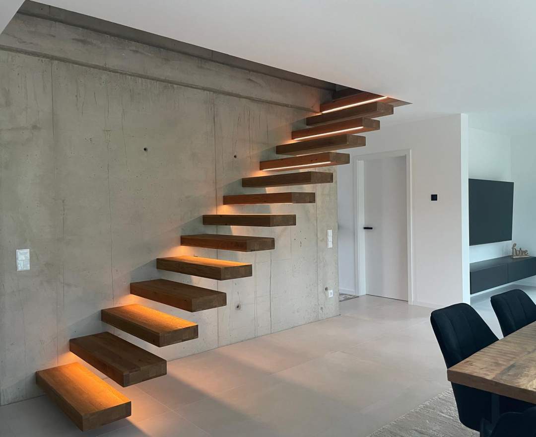 Unsere LED-Stufenbeleuchtung verleiht Ihrer Treppe ein stilvolles Ambiente und sorgt gleichzeitig für mehr Sicherheit. Die dezent integrierten LED-Leisten setzen jede Stufe perfekt in Szene und schaffen ein harmonisches Lichtspiel, das Ihren Wohnraum aufwertet.