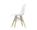 Beim Dining Height Side Chair Wood Base (DSW) kombinierten Charles und Ray Eames die organische Sitzschale mit einem Vierbein-Holzuntergestell. Die Kombination von Kunststoff und Holz verleiht dem Klassiker eine gewisse Wärme, eine besonders wohnliche Note. Die Sitzschalen können mit Sitzpolstern oder einer kompletten Polsterung ausgestattet werden, deren Auswahl an Stofffarben eine Vielzahl von individuellen Konfigurationen ermöglicht.