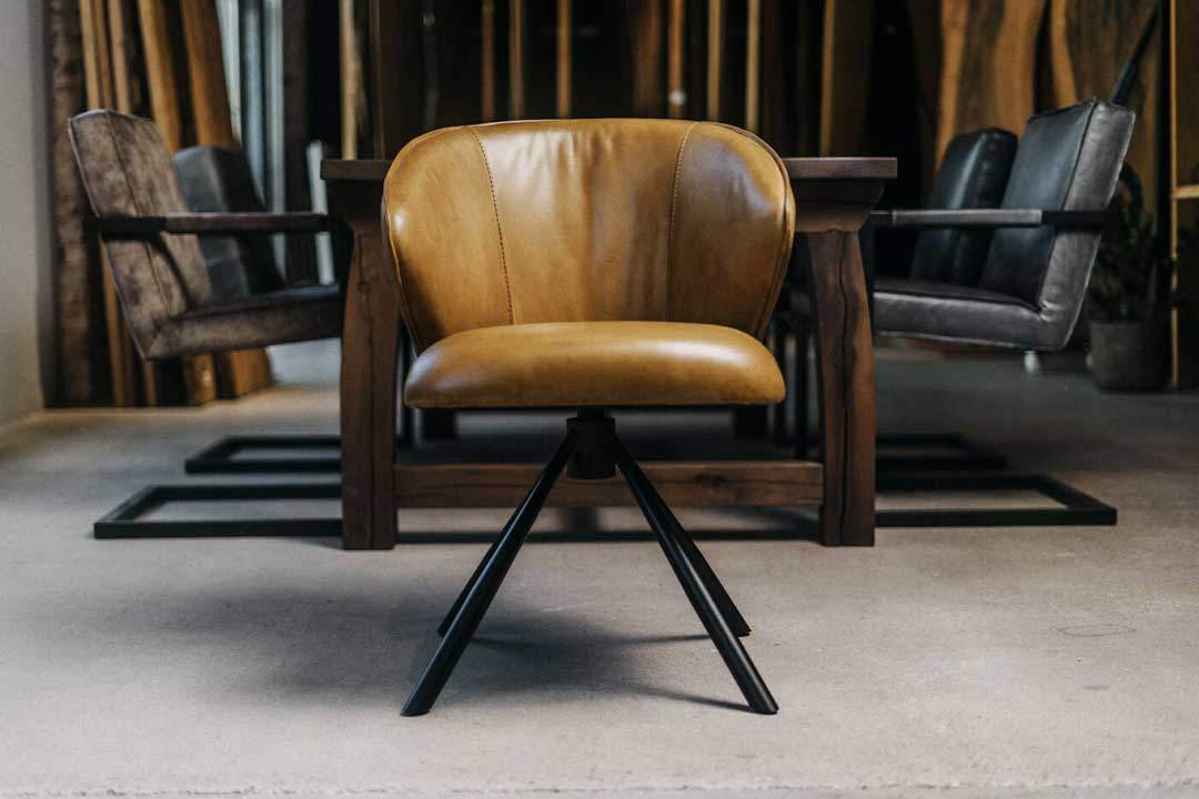 Ein gemütliches Sitzerlebnis ist mit diesem Drehstuhl garantiert. Der Essszimmerstuhl aus Echtleder hat eine automatische Auto-Return-Funktion. Damit dreht er sich immer wieder in seine Ausgangsposition zurück.