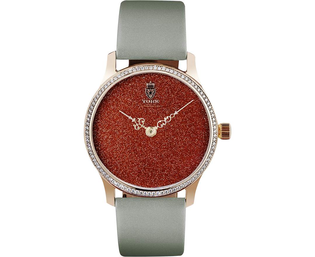 Zifferblatt aus Blaufluss mit feinen goldenen Einschlüssen.