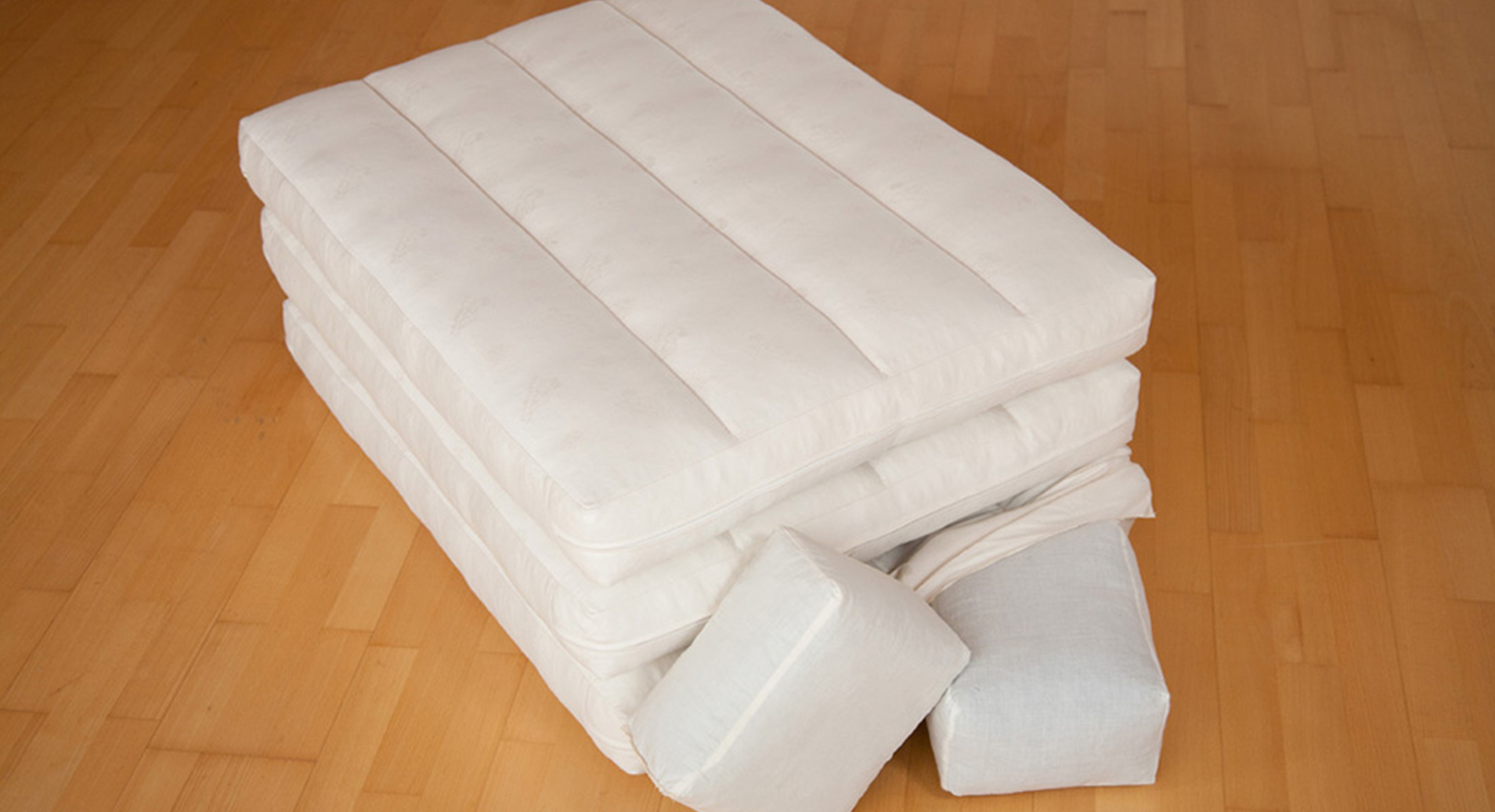 Die Matratzenpflege im Verlauf der Jahre ist durch das dreiteilige System kinderleicht, denn die einzelnen Teile sind handlich und können von jedem rückenschonend bewegt werden. So können die einzelnen Würfelkissen der moosburger® Rosshaarmatratze bis 30°C und die kbA Baumwolle bis 60°C gewaschen werden. „Mir ist keine Matratze bekannt, die so langlebig ist und derart unkompliziert waschbar wäre“, betont André Kanzock. „Damit sind Produkte aus Rosshaar hygienisch einwandfrei und fördern ein gesundes Schlafklima – eine gute Investition fürs Leben.“
