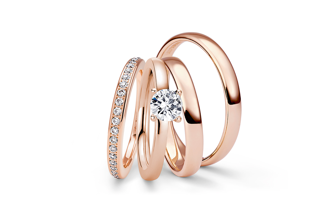 heißt es bei der Expertin und bei NIESSING, deren Kollektionen faszinierender Trauringe hier in Brühl einen festen Platz haben und von Heiratswilligen gerne nachgefragt werden. Die NIESSING Manufaktur mit Sitz in Vreden hat ein besonderes Verfahren entwickelt wie Trauringe komplett nahtlos und ohne Fugen, zeitlos und schön, den Stürmen des Lebens standhalten und im Bedarfsfall auch mitwachsen. Nicht nur die hochwertigen Legierungen, die Beständigkeit und die Härte des Materials machen diese Ringe so exquisit und kostbar, auch die vielfältigen Nuancen der Goldtöne sind einzigartig. Wer bei Gold nur an Gelb denkt, weit gefehlt. Zarte Farbspiele, wie bereits in der Namensgebung ersichtlich, ob rosewood, ivory oder etwa spring green, ob warm und sinnlich oder kühl und klar eröffnen ein weites Feld der Möglichkeiten. In dem Moment, wo Hautton und Goldfarbe miteinander harmonieren, haben Sie Ihren Schatz fürs Leben gefunden.